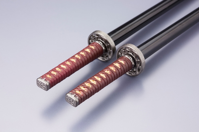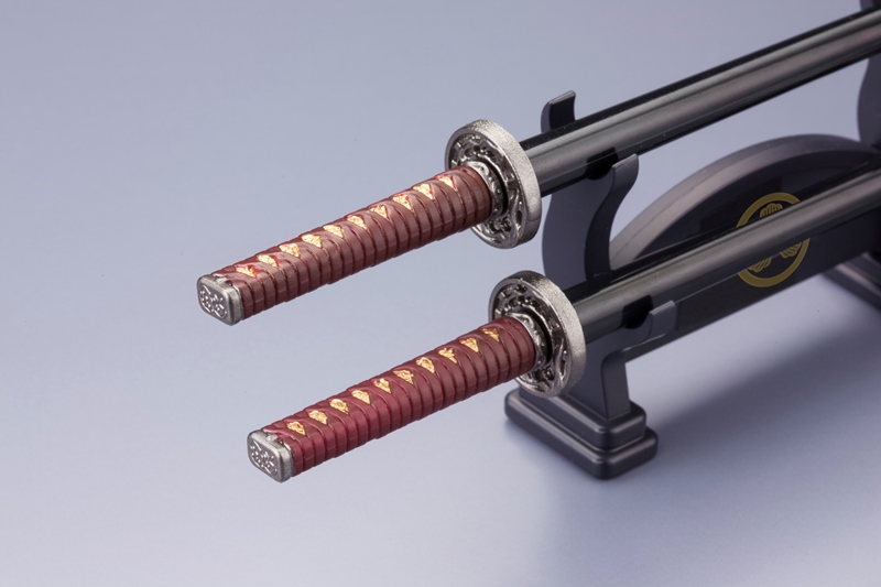 島左近は、愛刀「無銘 大和伝」をモチーフに、鍔などの部分のデザインにこだわり造型。柄部分は「島左近」をイメージしたオリジナルカラーになります。