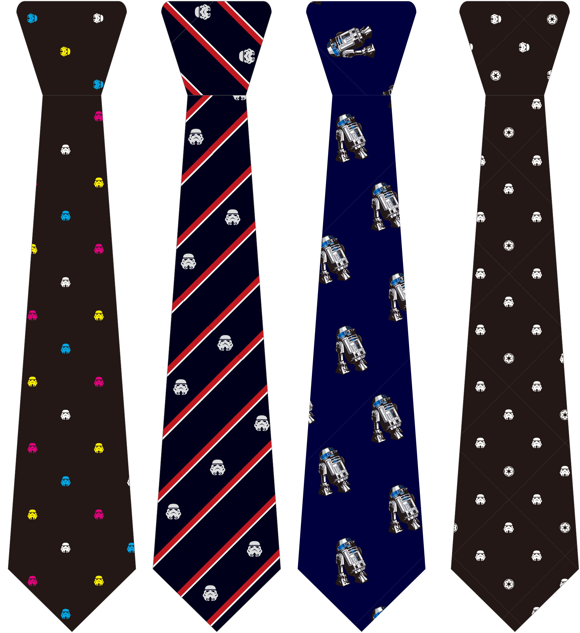 新しくラインナップしたのは、第1弾でも大人気のロイヤルクレスト柄と小紋柄のストームトルーパー、R2-D2はX-WINGでも好評だったクレスト柄の計4種。発売中のスター・ウォーズビジネスグッズ(ネクタイピン、カフス、名刺入れ)とあわせて使いたい、マニア心くすぐるアイテムです。