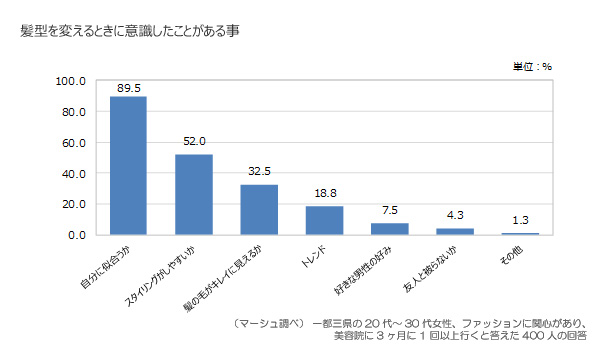 調査対象者:一都三県在住の20代~30代女性、ファッションに関心があり、美容院に3ヶ月に1回以上行く人