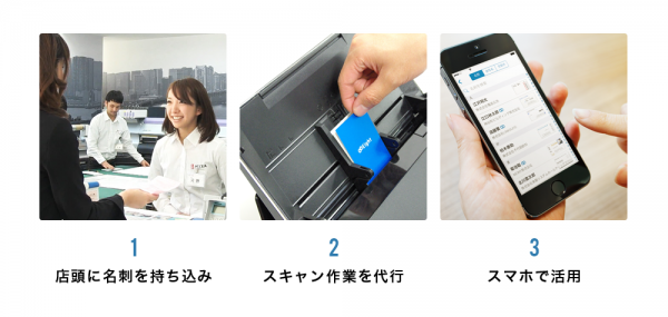 利用者から名刺を預かり、Eightに取り込むためスキャン作業を代行します。
