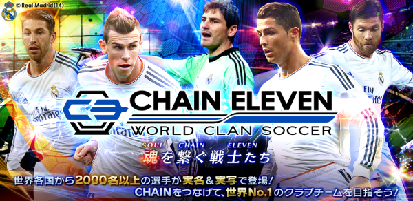 モバイルゲームプラットフォーム「mobcast」(http://mobcast.jp/)の運営を行う株式会社モブキャスト(本社:東京都港区、代表取締役:藪考樹)は、モバイルオンラインゲームの企画・開発・運営をおこなう株式会社gumi(本社:東京都新宿区、代表取締役:國光宏尚)と共同開発した、リアルタイムサッカーバトル「チェインイレブン ワールドクランサッカー」(http://www.chain11.net)ネイティブアプリ版の韓国での配信が開始され、また、日本、中国、韓国において、レアル・マドリ―C.F.とのライセンス契約が締結されましたことをお知らせいたします。