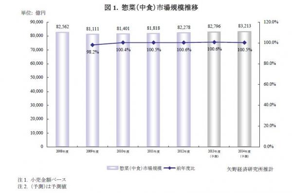 ◆ 2012年度の惣菜(中食)市場規模は前年度比100.6%の8兆2,278億円と堅調推移