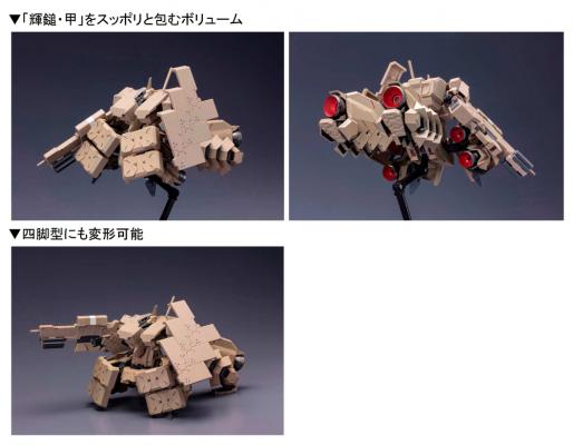 「輝鎚」の機体デザインを手掛けたメカデザイナー稲葉コウ氏が再びコンセプトデザインを担当し、本体との親和性を高めつつ圧倒的なボリュームを誇るアイテムとなっております。通常形態から四脚型の駐機形態への変形機構が可能。また、新規造形の頭部パーツも付属します。「輝鎚」以外の機体へも取り付け可能なアタッチメンチパーツも付属するため、「輝鎚」以外の機体でも遊ぶことができます。