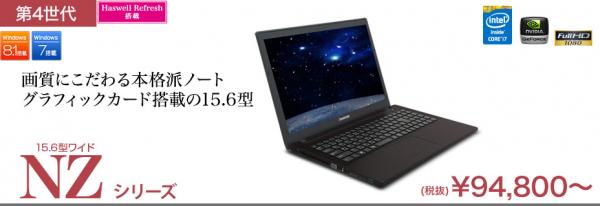 このたび発表する新製品は、インテル(R)HM86マザーボードをベースに、インテル社の最新CPU 第4世代(Haswell Refresh)「インテル(R) CoreTM i7-4710MQ(2.50GHz/6MB)」、NVIDIA社のMaxwellアーキテクチャ採用の「NVIDIA(R) GeForce(R) GTX850M (2048MB)」を標準搭載したフルHD対応の15.6型ノートです。