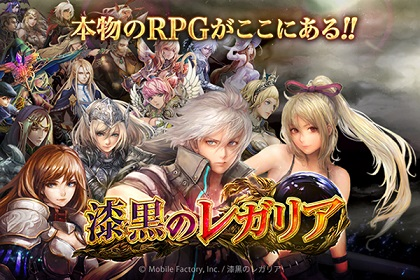 モバイルゲームプラットフォーム「mobcast」(http://mobcast.jp/)の運営を行う株式会社モブキャスト(本社:東京都港区、代表取締役:藪考樹)は、ソーシャルアプリ事業並びにモバイルコンテンツ事業をおこなう株式会社モバイルファクトリー(本社:東京都品川区、代表取締役:宮嶌裕二)が運営する本格ファンタジーRPG「漆黒のレガリア」(http://lp.mobcast.jp/game/1122)の配信を本日、15時より開始することをお知らせいたします。
