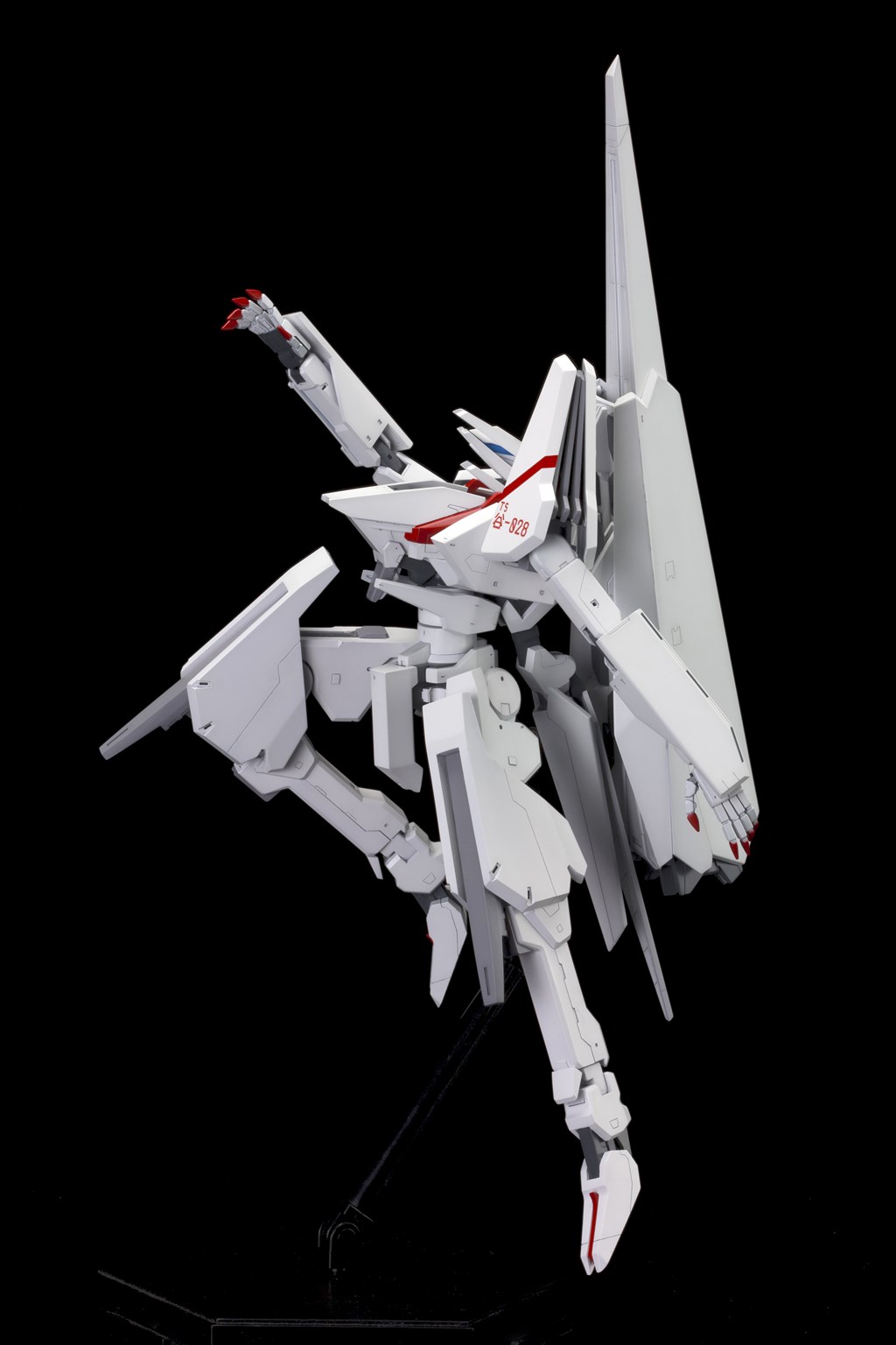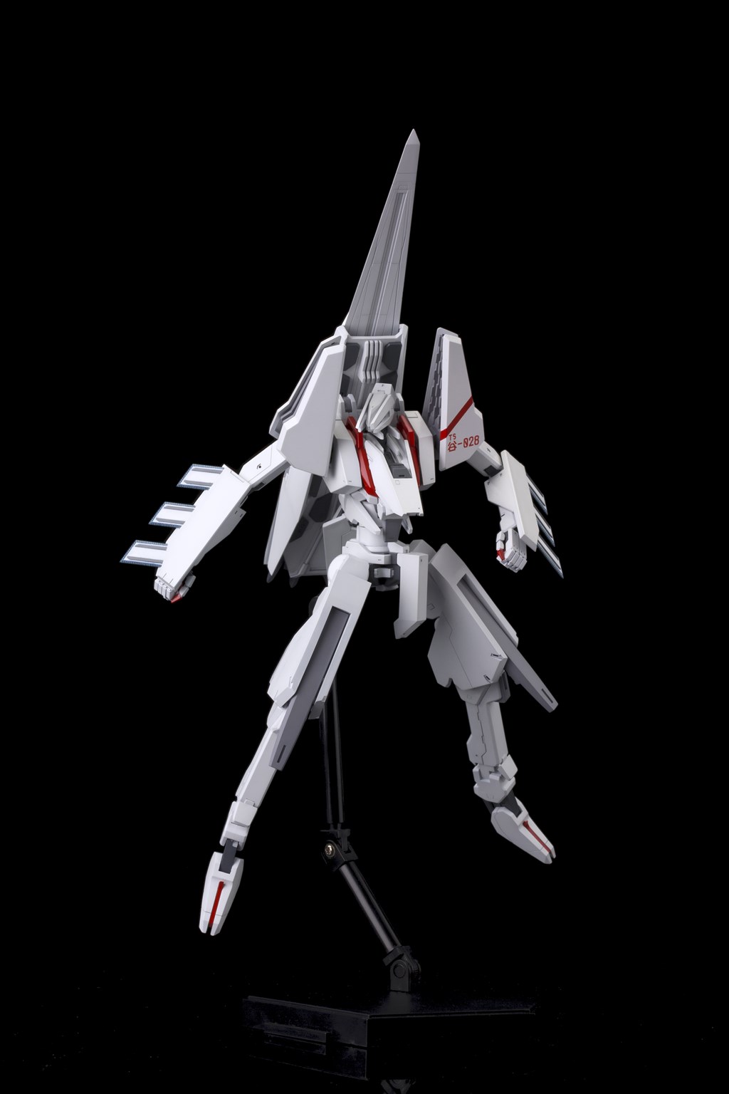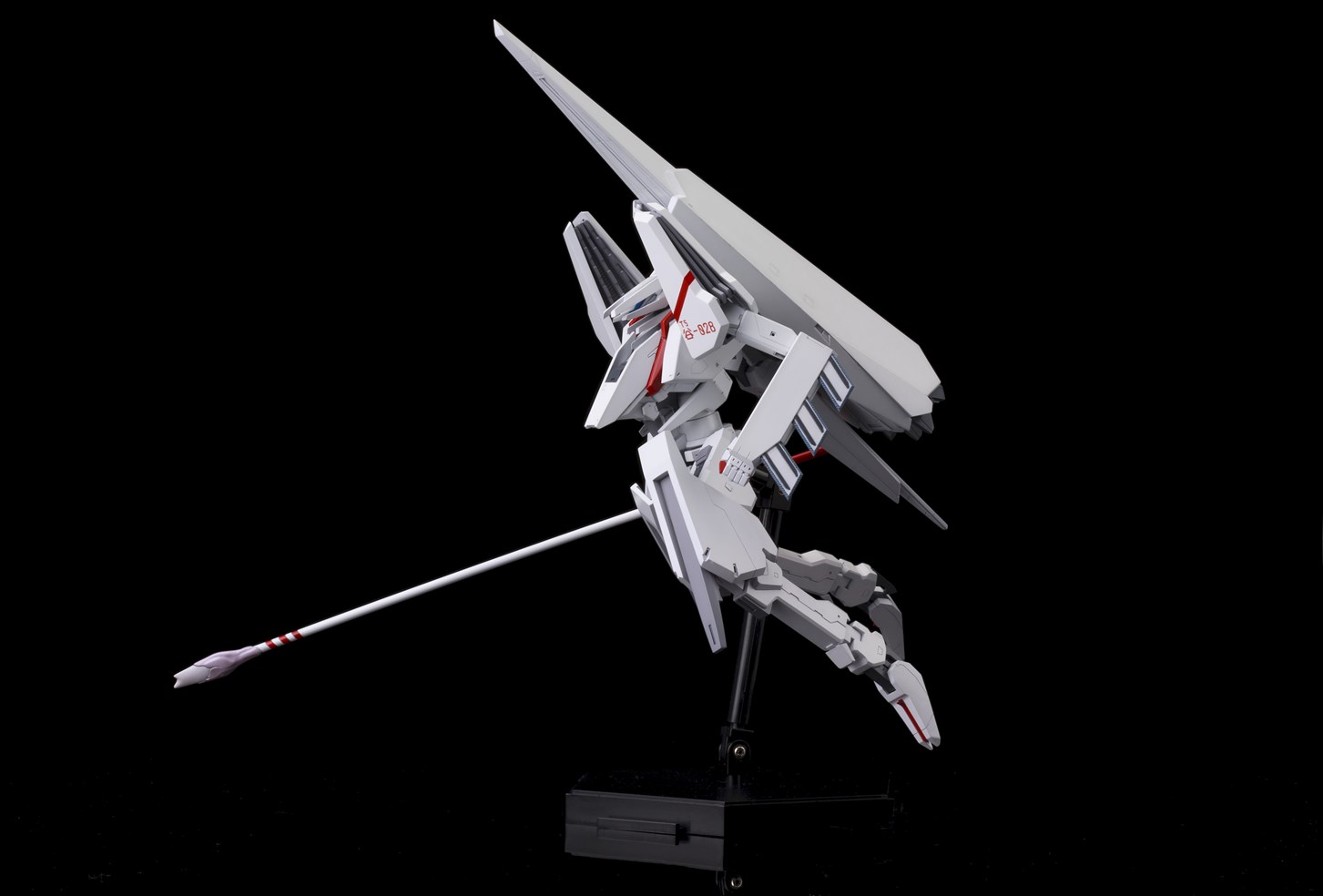 劇中で登場する「頭部ヘイグス粒子砲」「背部ブースター」「足部アンカー」の展開・可動を再現。腕部の「収納型人工カビザシ」も展開を差し替えで再現しています。槍状の主要武器「カビザシ」を、アニメ設定に準じたデザインで新たに付属。同じく腕部(盾)の高振動ブレードもアニメ版デザインにて再現可能です。また、補助的な腕部武装である「バルカン砲」「鋭針炸裂弾」が付属。衛人を特徴づける掌位(しょうい)ギミック再現用に「二機掌位再現用手首」及び、「三機以上掌位再現用手首」が付属。アニメ劇中では現在未登場の四足歩行形態への変形も再現しました。