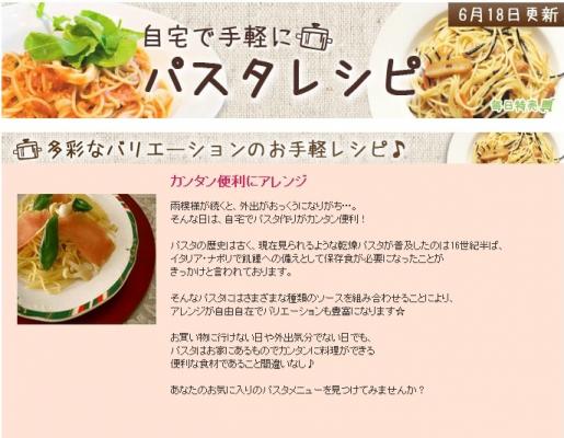 お天気の悪い日や簡単な調理ですませたい日には便利な食材「パスタ」を使ったアレンジ料理できまり!!
