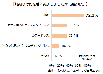 【「前撮りした」(54.6%)、前撮り衣装は「和装(72.3%)」が人気】