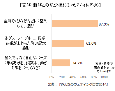 「全員で(ひな段などに)整列して、撮影(87.9%)」「自由なポーズ(34.7%)」