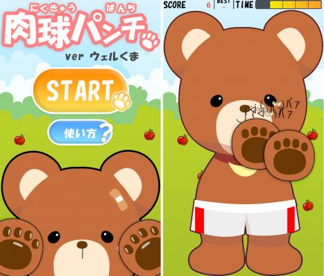 インターネットメディア事業を展開するアイティオール株式会社(本社:東京都港区、代表取締役:鹿島 雄介)は、癒し系アプリ「ウェルくま」の派生ゲーム、「肉球パンチ ver.ウェルくま」のiPhone版(2014/5/14公開)とAndroid版(2014/6/6公開)の配布を開始したことをお知らせします。アプリは無料。