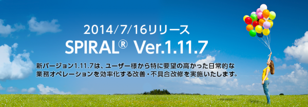 新バージョン1.11.7は、「スパイラル(R)」をご利用中のお客様からとりわけ多くいただいたご要望を中心に、2件の機能改善及び6件の不具合修正、1件の仕様変更を通じて、日々の業務オペレーションの利便性を向上いたします。