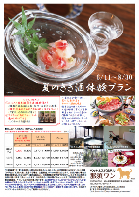 きき酒としてご用意する3種類のおすすめ日本酒(冷酒)は、「天鷹」「白峰」「仙禽」。1室につき1回チャレンジし、3種類すべて正解したお客様に、お好きなお酒を1合プレゼントするというもの。ワンちゃんにはシャーベット無料プレゼント。