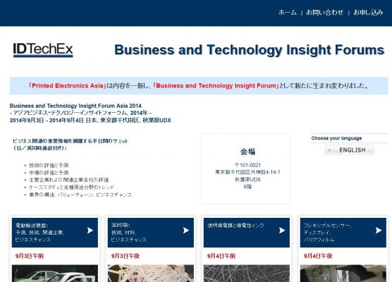 「Printed Electronics Asia」は内容を一新し、「Business and Technology Insight Forum」として新たに生まれ変わりました。