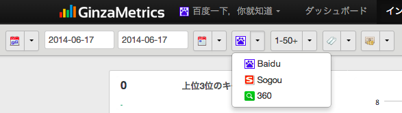 中国市場において、中国シェア1位のBaidu(百度)、シェア2位のQihoo360(搜索)、シェア3位のSogou(搜狗)の、3検索エンジンのキーワード順位を取得します。