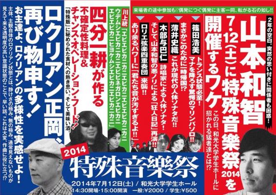 特殊音樂祭は、現代音楽における特殊性に焦点をあて、作曲家の山本和智とスリーシェルズの西耕一がスタート。