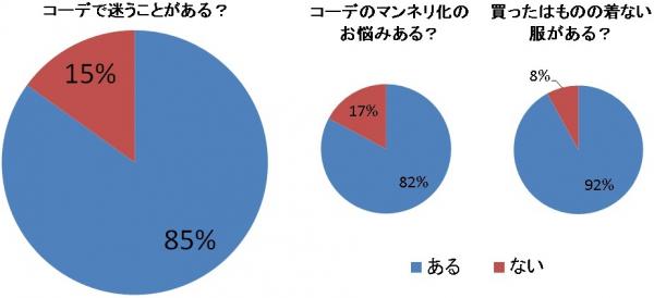 検索やソーシャルメディアではコーディネイト(以下コーデ)に関するトラフィックが増える傾向にあります。フェリシモでファッションに興味がある女性のお客さま500人以上にアンケートによる意識調査を実施したところ、85%の方が「コーデで迷う」ことが “ある”とお答えになっています。