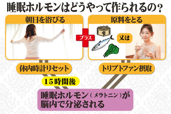 『体内時計のタイマーリセット』と『睡眠ホルモンの原料』の両方が揃うことが重要です。