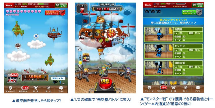 飛空艇バトルでは、敵船の大砲に照準が合ったタイミングで“砲撃”し、撃破に成功すると「飛空艇ポ