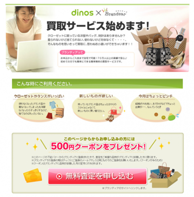 株式会社デファクトスタンダード(本社:東京都大田区、代表取締役社長:尾嶋崇遠)が運営するブランド品宅配買取サービス「ブランディア」は、株式会社ディノス・セシール(本社:東京都中野区)が運営する「ディノスオンラインショッピング」にて「ブランド品宅配買取サービス」の提供を本日より開始いたします。