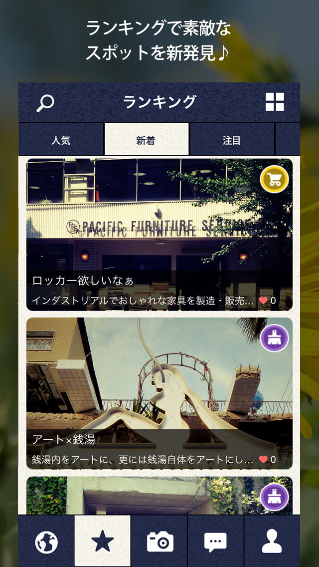 人気や注目ランキングから探せば、みんなが気になっている「お気に入りの場所」を新たに発見できます。