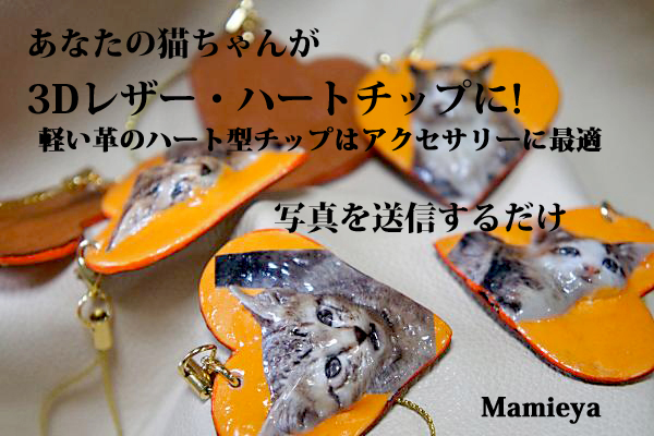 1枚の猫ちゃん写真貼付メールを下さい。ハート型の本革チップに3D立体の猫ちゃんが出来ます。