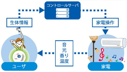 さらに、家電操作後のユーザの生体情報の変化から、より最適な操作が行えるようにアプリケーションが学習していきます