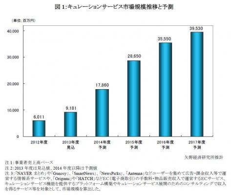 ◆ 流通情報量の増加とスマートデバイスの普及で、高い成長率を示すキュレーションサービス