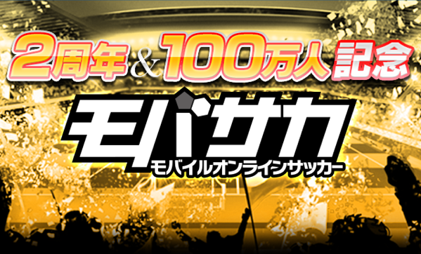 モバイルゲームプラットフォーム「mobcast」(http://mobcast.jp/)の運営を行う株式会社モブキャスト(本社:東京都港区、代表取締役:藪考樹)は、モバイルオンラインサッカーゲーム「モバサカ」(http://sc.gmpa.jp/index.html)が、本日、配信開始から2周年を迎えたことを記念して、特別キャンペーンを実施することをお知らせいたします。