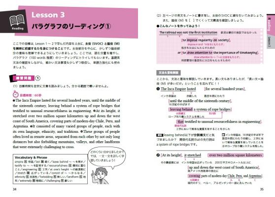 また、リーディングの学習が次のリスニング学習の基礎に、ライティングの学習が次のスピーキング学習の基礎になるよう、構成されています。