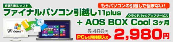 上記対象製品のご注文時に、AOSテクノロジーズ社「ファイナルパソコン引越し11plus ダウンロード版」を当社限定の特別価格でご提供、さらに「AOSBOX Cool」の3ヶ月間の使用料をサービスいたします。