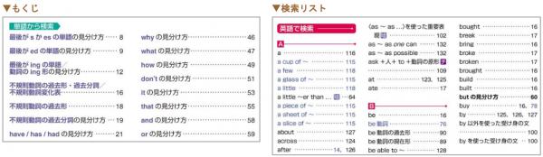 「関係代名詞」「現在進行形」といった文法用語ではなく、「what」や「~ing」といった、長文中の訳しづらい単語などから検索することができます。