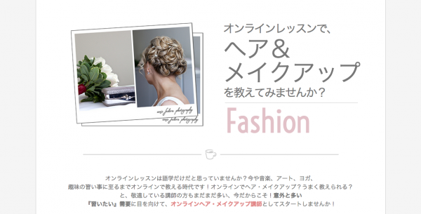 最近は語学オンラインレッスン以外にも、ピアノやクラリネット等の音楽レッスンや、イラスト、デザイン、書道等のレッスンを提供する芸術家の登録も増えております。その流れを汲み、おけいこ・習い事系のレッスンを充実させるため、この度オンライン「ヘア・メイクアップ講師」募集ページをリリース致しました。