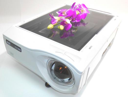 「AD-1000XS」は、現在国内唯一の書画カメラ内蔵のプロジェクターで、印刷物や立体物をガラス面に載せるだけでそのまま投影、そのままスキャンしてデータ保存する事ができるドキュメントプロジェクター。さらに、一般のプロジェクターと同様にパソコン画面やビデオ・DVD等の映像はもちろん、HDMI端子やUSB端子も搭載していますので、USBメモリに保存した資料をパソコン無しで投影する事もできます。解像度XGA (1024×768ドット)、明るさは高輝度2,800lm、更に超短焦点レンズ採用で、1m 80インチの大画面投影が可能。