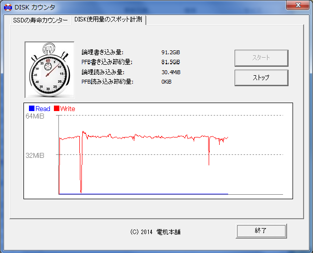 SSDの寿命測定とは別に、ストップウォッチ的なSSDの寿命測定も提供します。