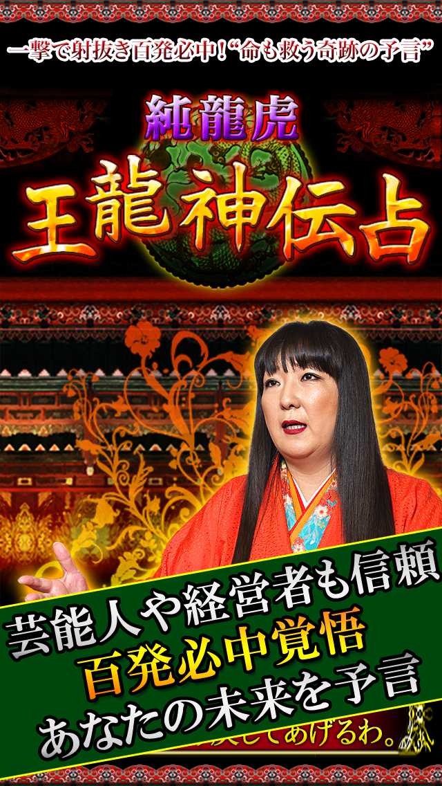 【恐れおののくほど当たる】芸能人や経営者の鑑定で、まさに“奇跡の予言”と言われるほど、数々の的中エピソードを持つ純龍虎の『王龍神伝占』がアプリ配信開始!