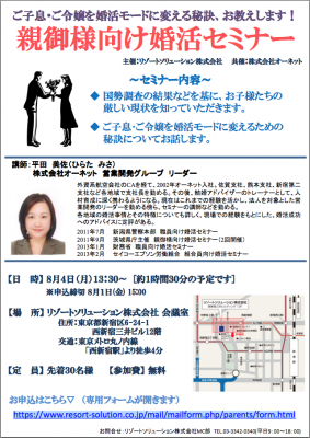 <「親御様向け婚活セミナー」 開催要項>