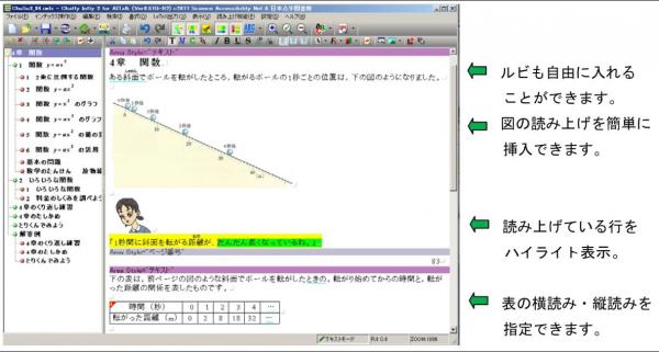 ChattyInfty3は、アクセシブルな電子書籍・教材編集ソフトです。エーアイはこの度、サクセスネットへPCソフトウェア組込み用途向け音声合成エンジンAITalk(R) SDKを提供いたしました。 ChattyInfty3では、AITalk(R)による合成音声を含んだDAISY, EPUB3等の形式の電子書籍・教材が簡単に作成することが可能となりました。