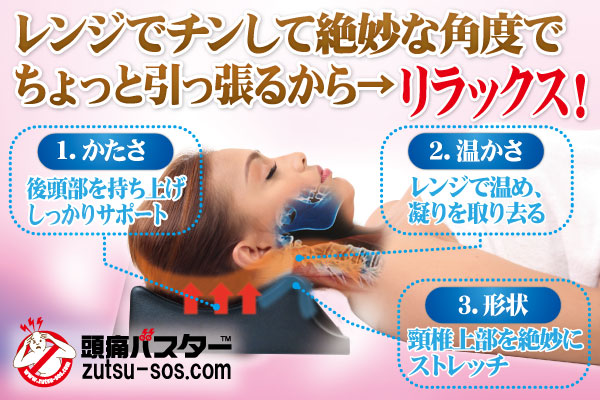 頭痛の原因となる頸椎(けいつい)上部の凝りをほぐし、温めたり冷やしたりできる点も高く評価されているため、