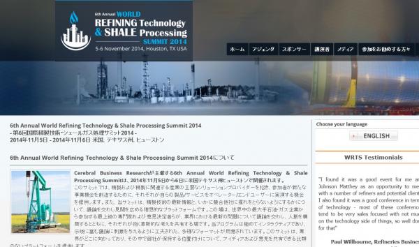 会議:「6th Annual World Refining Technology & Shale Processing Summit 2014-第6回国際精製技術・シェールガス処理サミット2014」