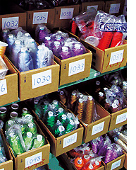 細やかな多色使いのモチーフにも対応できるよう、200色以上の刺しゅう糸が常に揃えられ、