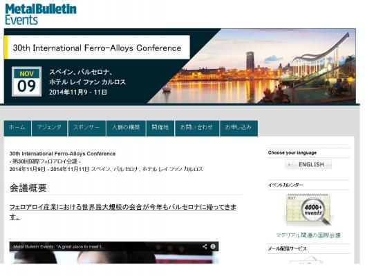 会議:「30th International Ferro-Alloys Conference-第30回国際フェロアロイ会議」