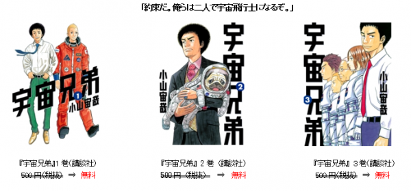 「BOOKSMART」会員(登録無料)は、平成26年8月1日(金)から8月14日(木)までの期間中、『宇宙兄弟』 (第1~3巻)を無料でダウンロードしてお楽しみいただけます。