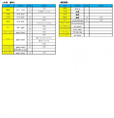 JTBやクラブツーリズム等の日系旅行会社は、各国で外国人観光客誘致のWebサイトを作成しています。キーワード<日本 旅行>にて、多くの日系企業が検索結果順位20位内に入っていることから、アジアからの観光客を各企業が重要視していることが伺えます。<航空券>のキーワードではエクスペディアやスターゲートなど世界的に有名なWebサイトが各国で検索結果順位20位内に入っている中、HISが香港とタイで20位内に入っていました。