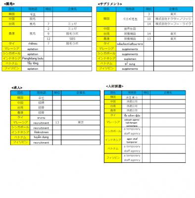 キーワード<脱毛>のキーワードでは、台湾、香港、タイで日本の脱毛サロンが検索結果順位20位内に入っていました。しかし、各国の上位に表示されているWebサイトの内訳をみると、脱毛サロンのWebサイトより市販の脱毛グッズや脱毛方法のWebサイトが多い傾向でした。キーワード<サプリメント>では、日本の大手ECサイトである楽天が韓国や中華圏で検索結果順位20位内に入っていました。