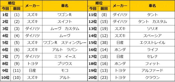 全体的にも先月からの動きこそ小さいものの、ソリオは6ランクアップの13位、エクストレイルは先月38位からジャンプアップで15位。昨年12月以来8か月ぶりのランクインです。