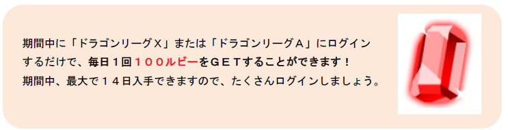 キャンペーン期間中に「ドラゴンリーグX」「ドラゴンリーグA」にログインするだけで、ゲーム内で利用できる