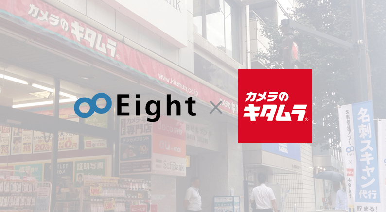 今回のキタムラとの提携では、店鋪預かり型の名刺スキャン代行サービスを実現します。ユーザーが名刺を店鋪に預けると、キタムラが名刺のスキャン作業を代行します。3日以内には名刺は返却可能となり、データはEightにとりこまれます。