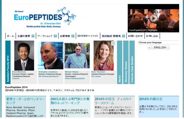株式会社グローバル インフォメーションでは、皆様の利便性を図る為に、日本語、韓国語、中国語で「EuroPeptides 2014」の情報を提供するとともに、学会の参加のお申し込みを承っております。