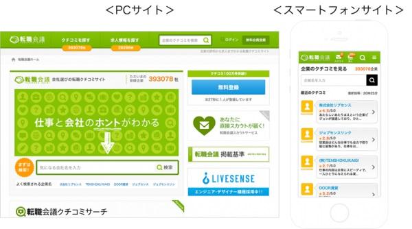 「転職会議」は、リブセンス初のCGM(Consumer Generated Media)として2010年7月にサイトオープンし、企業の「評判」「年収」「入社対策」などのクチコミ情報をはじめ、福利厚生・やりがい・雰囲気など全10項目のユーザー評価や、社風に関する様々な投票結果といった、転職希望者が志望企業について知りたい情報を多数掲載しております。今年3月には、累計会員登録者数が100万人を超え、この度、会員の皆様が過去または現在お勤めの会社について文章でご記入下さったクチコミの掲載数につきましても100万件を突破いたしました。これにより、ユーザーの企業評価・評点投票を含むクチコミ情報掲載件数は、2014年8月現在で約240万件となり、業界でも圧倒的な掲載規模を誇る転職クチコミサイトとなりました。