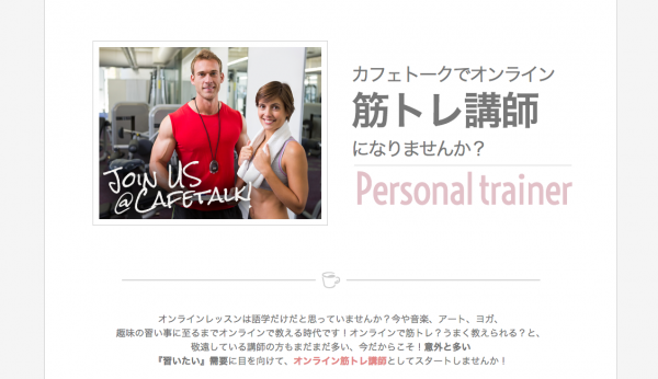 最近は語学オンラインレッスン以外にも、ピアノやクラリネット等の音楽レッスンや、イラスト、デザイン、書道等のレッスンを提供する芸術家の登録も増えております。その流れを汲み、語学以外のレッスンを充実させるため、この度「オンライン筋トレ講師」募集ページをリリース致しました。